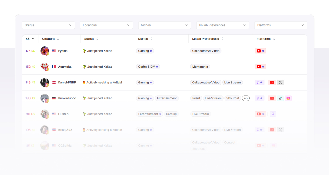 You've tried DMs, forums, Discords... and maybe you're even a little shy. Either way, most people don't answer. Kollab fixes that. Find creators like you, collab easily, no chaos. It's quick, it's easy, it's Kollab.